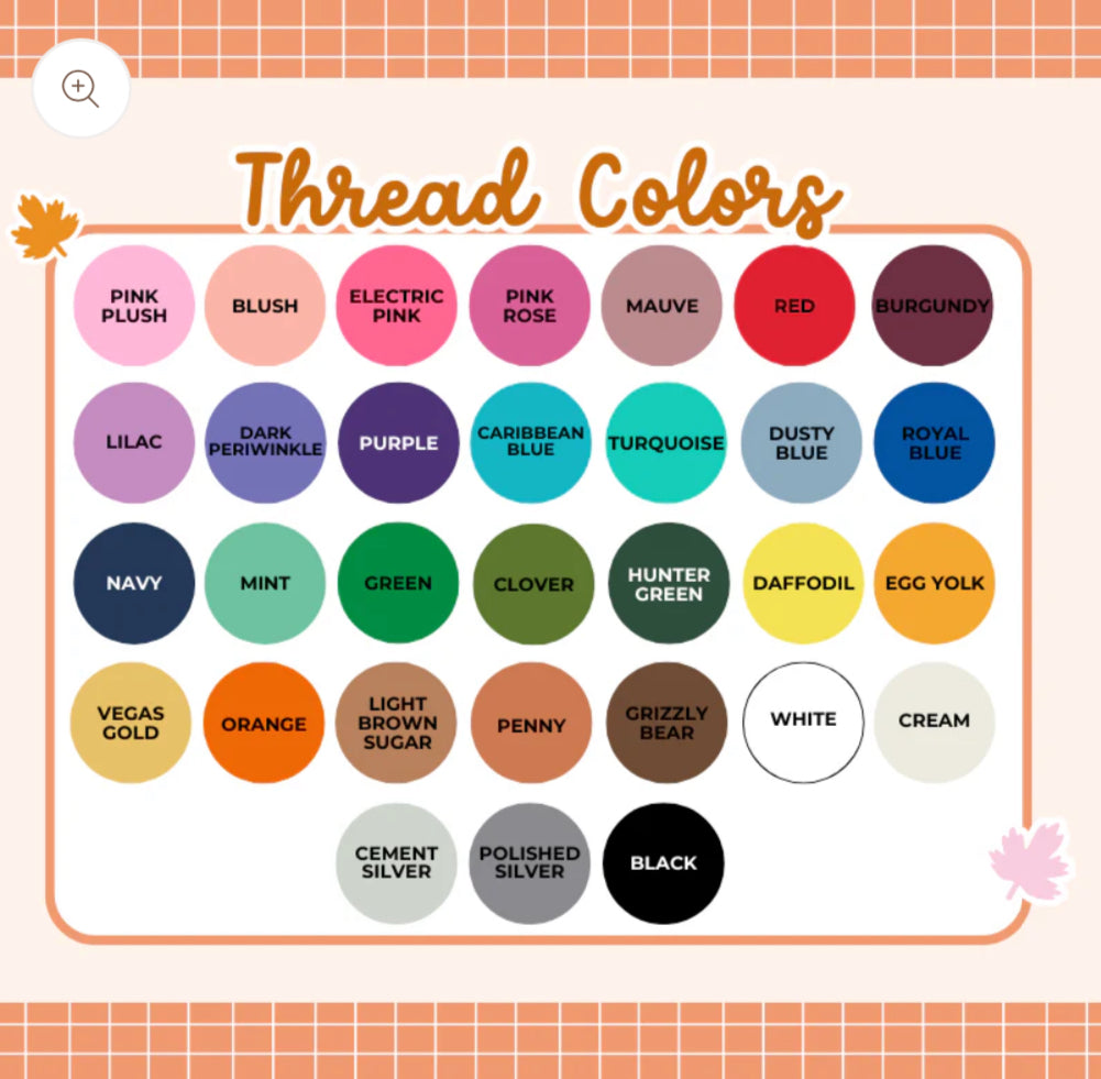 Choose your pullover color OR as shown (thread colors dusty blue, white, red).